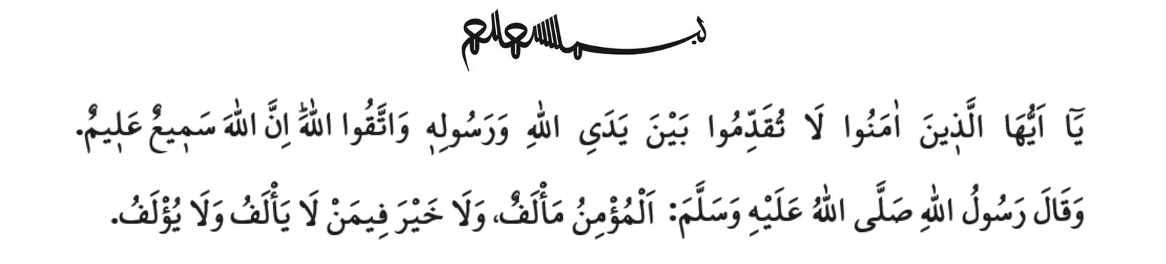 Yüce Rabbimiz Hucurât sûresinin ilk ayetlerinde bizlere şöyle buyurmaktadır: “Ey iman edenler! Allah ve Resûlünün önüne geçmeyin. Allah’a karşı gelmekten sakının. Şüphesiz, Allah hakkıyla işitendir, hakkıyla bilendir. Ey iman edenler! Seslerinizi Peygamberin sesinden daha fazla yükseltmeyin, birbirinize seslendiğiniz gibi ona seslenmeyin; sonra farkında olmadan amelleriniz boşa gider.”[1]