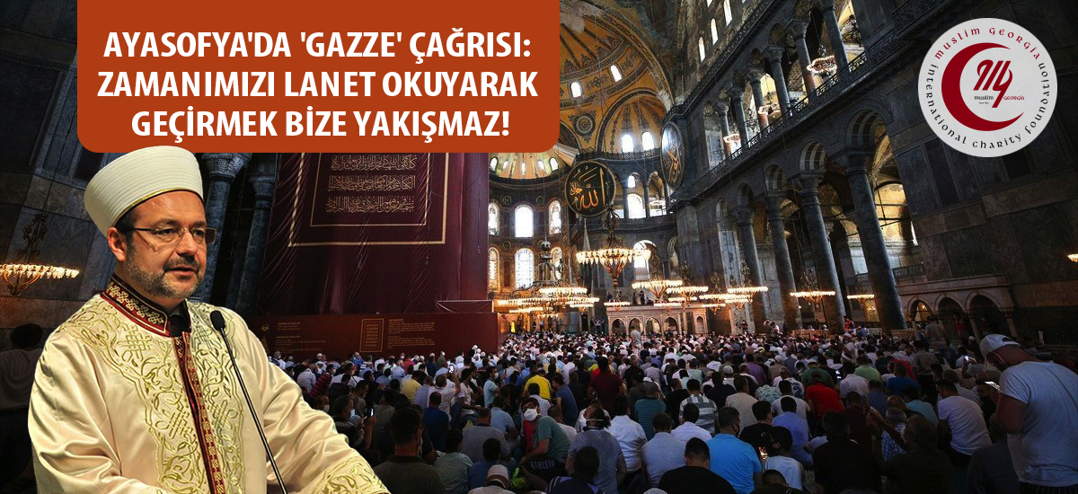 Diyanet İşleri Başkanı Ali Erbaş ve farklı ülkelerden İslam alimleriyle birlikte Ayasofya-i Kebir Camii Şerifi’nde Cuma namazında bir araya geldi. Cuma namazını Diyanet İşleri eski Başkanı Prof. Dr. Mehmet Görmez kıldırırken Cuma hutbesinin konusu işgalci siyonist İsrail’in soykırım yaptığı Gazze oldu.
