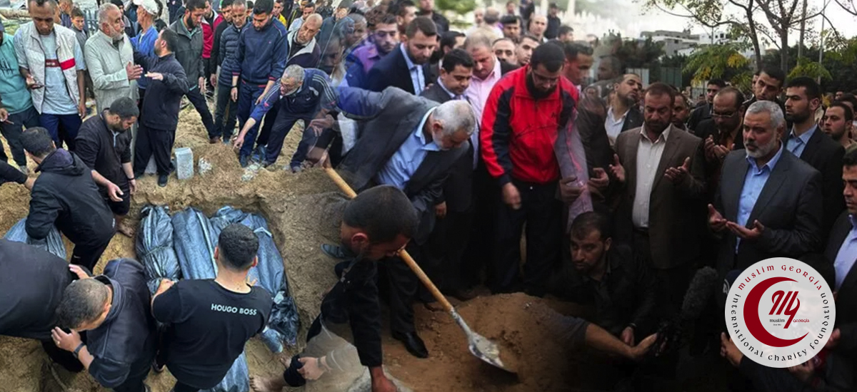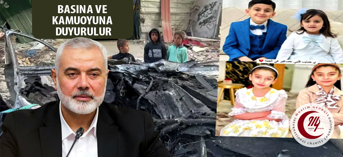 Masum sivillerin yaşadığı yerleşim yerleri, mabetleri, hastaneleri bombalayıp Gazze’yi enkaza dönüştüren işgalci Siyonist, Ramazan ayı boyunca sürdürdüğü saldırılarına, bayramın ilk gününde de devam etmiş, son yapılan saldırılarda da Hamas Siyasi Büro lideri sayın İsmail Heniyye’nin üç çocuğu ve üç torunun da içinde bulunduğu onlarca kişi vahşice katledip şehit etmiştir. Ailesinden ve akrabalarından onlarca şehit haberi gelmesine rağmen büyük bir metanet ve sabırla bu durumu karşılayan başta İsmail Heniyye ve ailesi olmak üzere tüm şehit ailelerine Muslim Georgia olarak Allah’tan sabr-ı cemil niyaz ediyor, yaralılara acil şifalar diliyoruz.