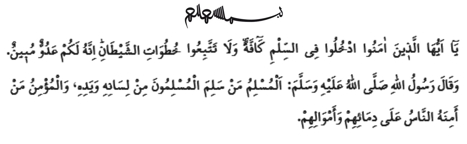 Okuduğum ayet-i kerimede Yüce Rabbimiz şöyle buyuruyor: “Ey iman edenler! Hepiniz topluca barış ve esenlik dini İslam’a girin. Şeytanın adımlarını izlemeyin. Çünkü o, size apaçık bir düşmandır.”